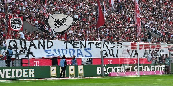 1300 Kilometer – und dann das! Schnell hatten sich die „Fans“ wieder sortiert und ihre Masken aufgezogen und posierten auf der Treppe zu B2. Siegfried M. (Name durch die Redaktion geändert) und ich waren so sauer und schrien nur: „Zieht die verdammten Masken aus und verzieht Euch aus unserem Block!!!!!“ Natürlich war das keine gute Idee, denn wir wurden von unseren vermeintlichen Mitstreitern bedroht und es wäre beinahe zur Eskalation gekommen. Magnifique! So stellt man sich das vereinsintern vor!
